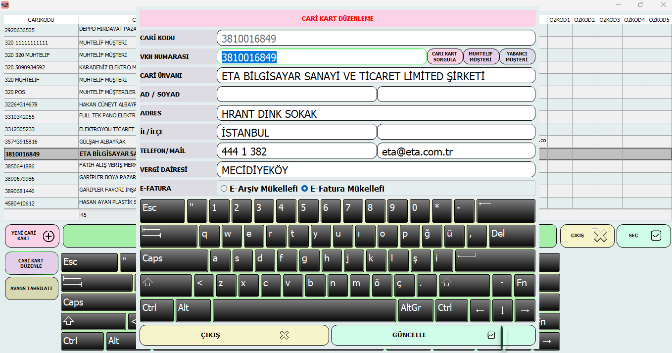 Yeni cari kart tanımlama ve cari kart düzenleme işlemlerini basit, hızlı ve kullanıcı dostu ekran yapısı ile kolayca gerçekleştirin.